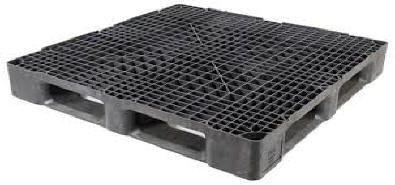 Plastic pallets are made by molding into a complete entity. The technique of molding permits the material to be evenly distributed into each area of the pallet, with strength and stiffness being obtained by the integral stiffening of ribs into the thin sections during molding.